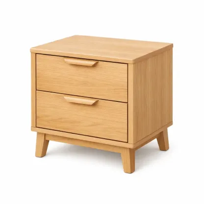 Bedside Table Oak Wood 2-Drawer Natural Finish 45 x 35 x 50 cm