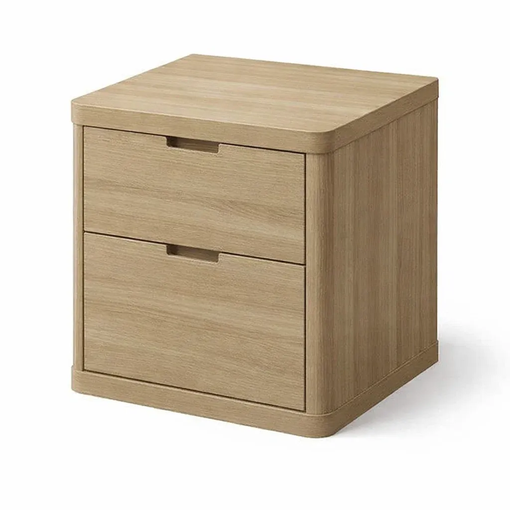 This nightstand is crafted from particleboard with an oak veneer, featuring a natural oak colour.