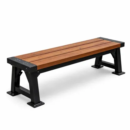 The bench features an industrial style with no backrest and rectangular legs.